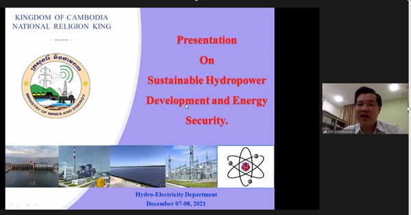 | 柬埔寨矿产能源部能源总司水电处处长Chy Chanrasmey先生作《柬埔寨水电可持续发展与能源安全》报告 | |