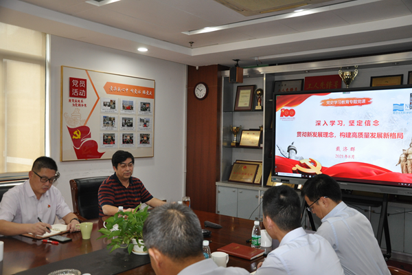 戴济群结合党史学习教育、学习贯彻习近平总书记在庆祝中国共产党成立100周年大会上的讲话精神,解读了中国共产党发展的四个历史时期取得的辉煌成就,分析了中国共产党开创和发展中国特色社会主义的成功经验。戴济群指出,大家一起重新学习,就是要坚定“以史为鉴、开创未来,必须坚持和发展中国特色社会主义”的伟大信念,要深入理解、精准对标水利交通能源行业“十四五”高质量发展阶段新任务。戴济群就企业管理机制顶层设计、集团总部作用发挥、业务整合与资源配置、促进产研融合成果转化、持续快速增强创新能力、坚持加强风险防控管理、挖掘特色促进转型升级发展等七个方面进行了深入阐述,提出了指导性意见。戴济群号召院属科技企业全体党员同志要牢记初心使命,立足新发展阶段,贯彻新发展理念,把准新时代院属科技企业定位,攻坚克难、精准务实,团结一致向前看,不断查找补足短板差距,为加快构建院属科技企业新发展格局贡献更大力量。