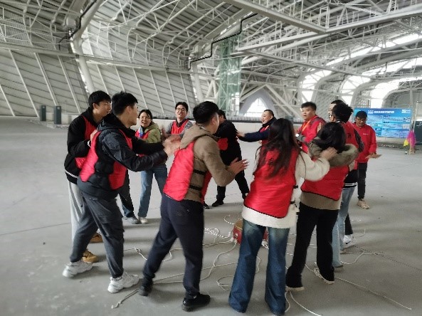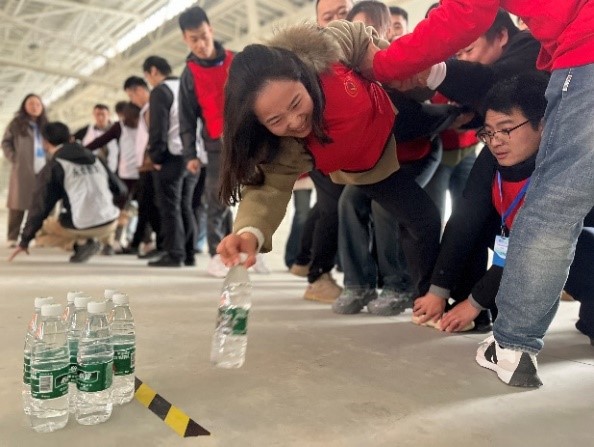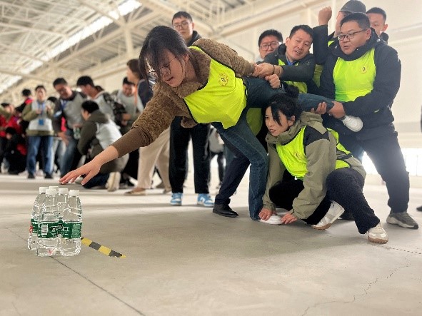 团队的创建与融合在“选队长-组团队-亮队名-喊口号”中拉开序幕,各支队伍在“群龙取水”“鼓动人心”“能量传递”“破解手链”“激情节拍”等系列主题拓展项目中,斗志昂扬、活力四射、同心同德、默契配合,现场气氛时而紧张激烈,时而轻松欢快,到处洋溢着青春与活力,队员们展现出顽强拼搏、奋勇争先的精神面貌和齐心协力、群策群力的团队精神。