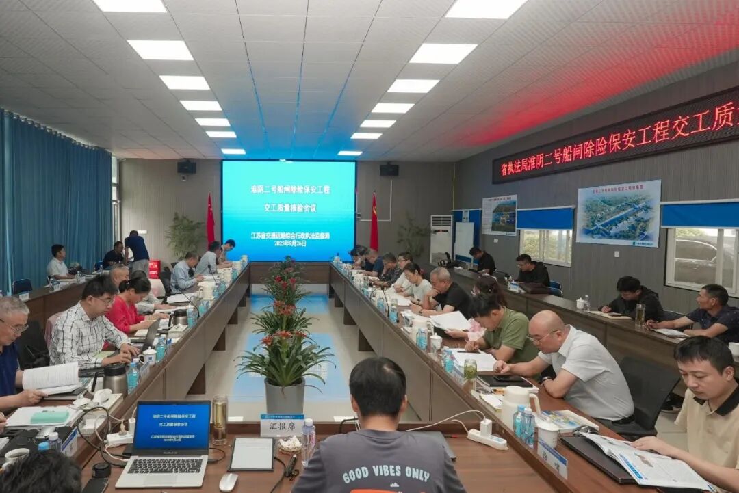 近日,南京水科院勘测设计有限公司和华设设计集团共同设计完成的淮阴二号船闸除险保安工程顺利通过交工验收。2025年9月26日,苏北航务管理处在淮安航务中心组织召开淮阴二号船闸除险保安工程项目交工验收会,会议听取了建设、设计、监理、施工等单位关于该项目情况的汇报,经省交通运输综合行政执法监督局现场查验工程实体与施工资料,评审委员会一致认为,工程质量符合设计及规范要求,内业资料齐全,鉴定为合格,同意通过交工验收。