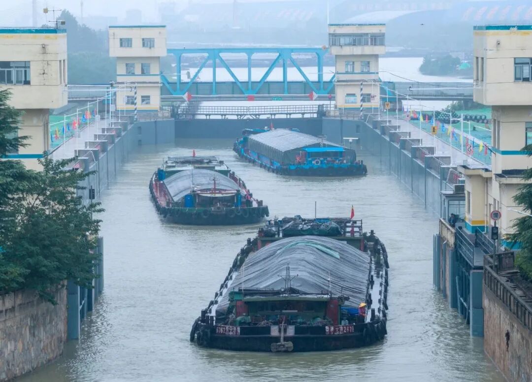 该项目在技术上实现三项“苏北运河首创”:一是首次在常水位以上采用全钢护面墙身结构,有效增强闸室墙身的防碰撞性能;二是首次应用三层浮式系船柱,显著提升不同吃水船舶的系泊安全性,三是首次应用34米宽“广室船闸”,有效提高了船闸通过能力和通航效率。这些创新举措不仅保障了工程整体质量,也推动了苏北运河水运技术的进步与升级。